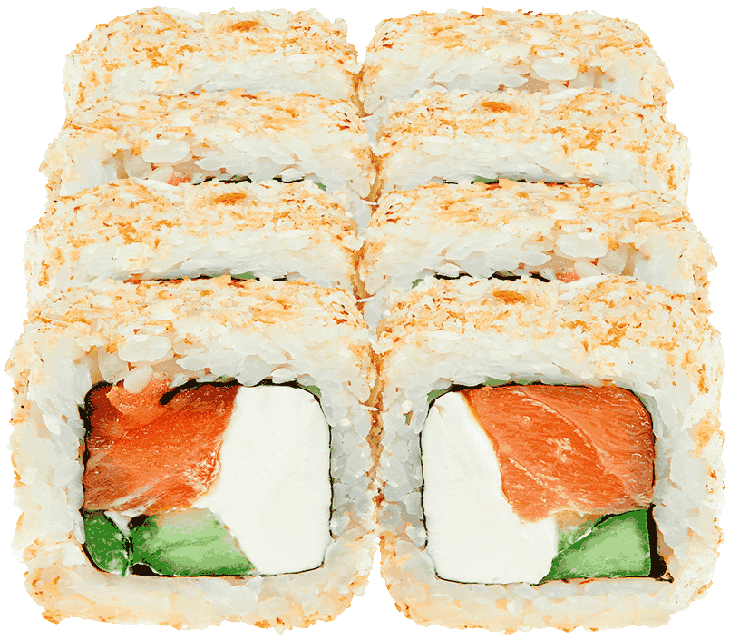 рис, сливочный сыр, лосось, масаго, яки соус, омлет, соевый соус, имбирь, васаби. 8 шт
