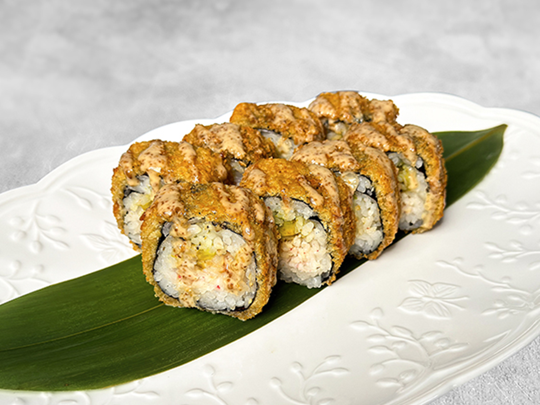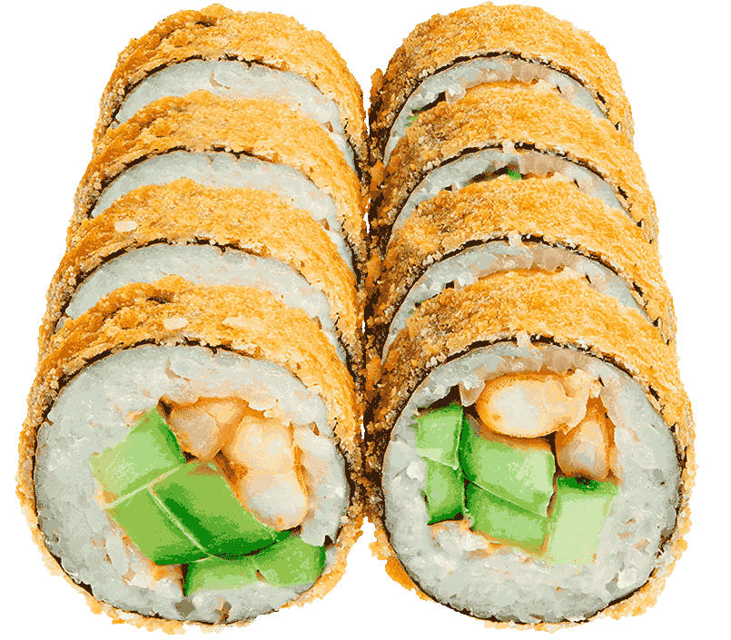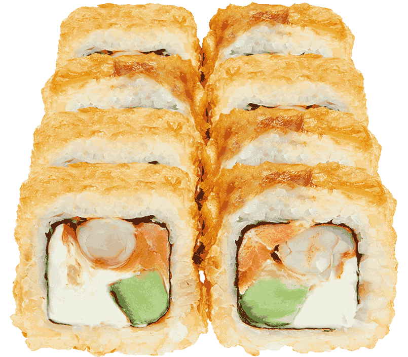 нори, рис, калифорния, краб, угорь, авокадо , кляр ,панировка, соус ореховый , соевый соус, имбирь, васаби. 8шт