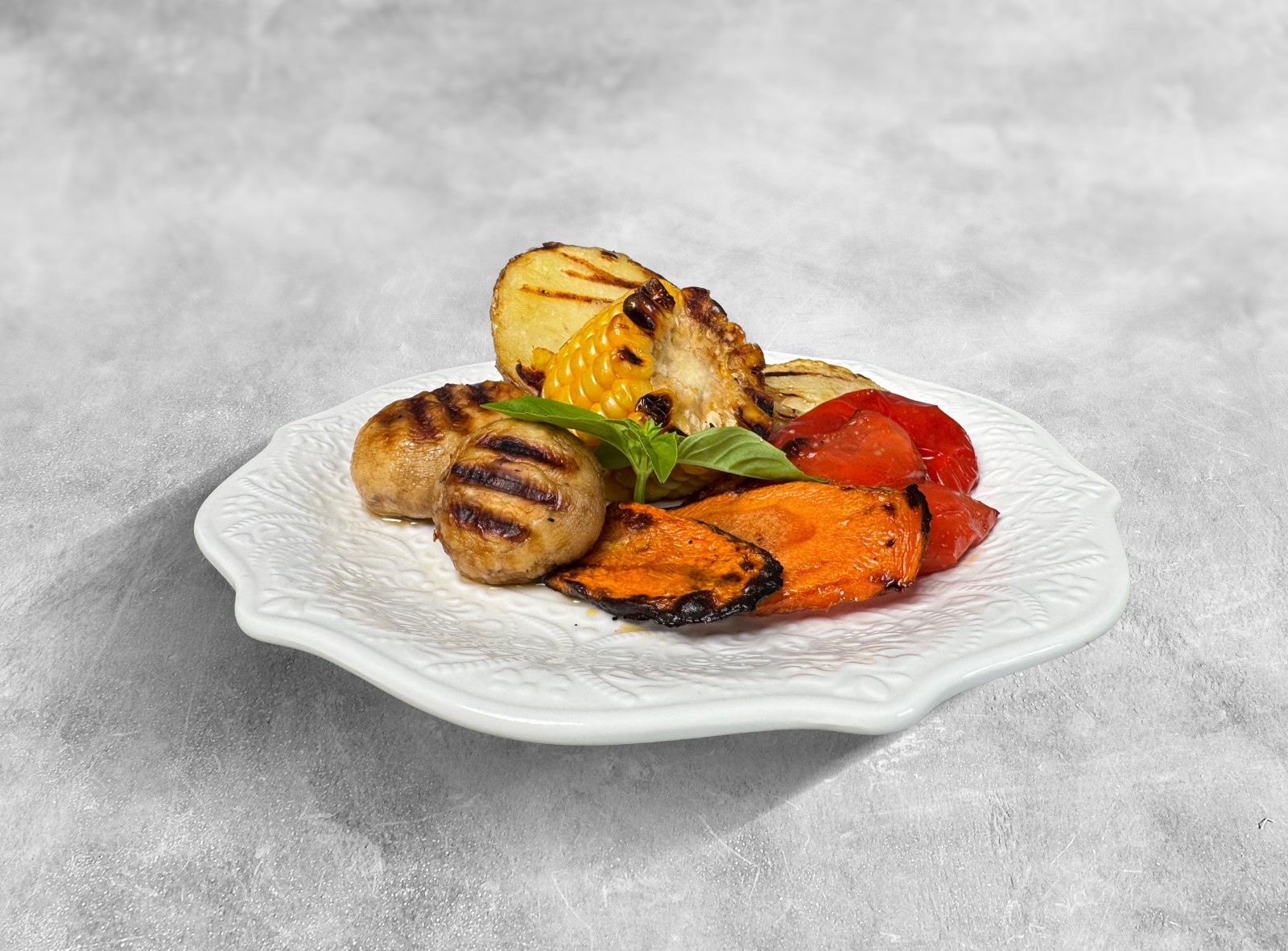 цуккини, картофель, шампиньоны, перец болгарский, кукуруза, морковь