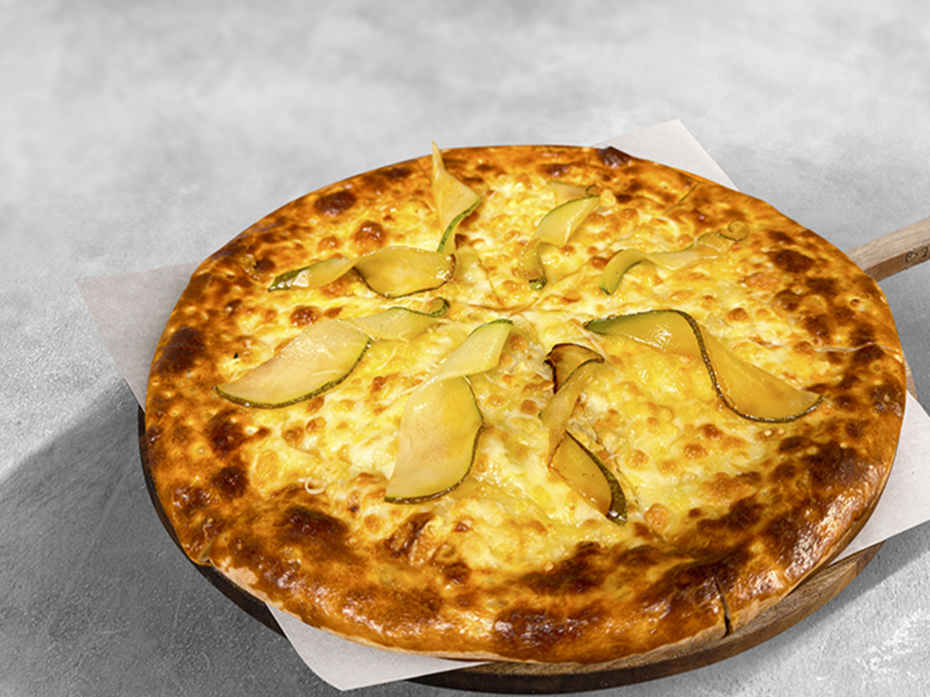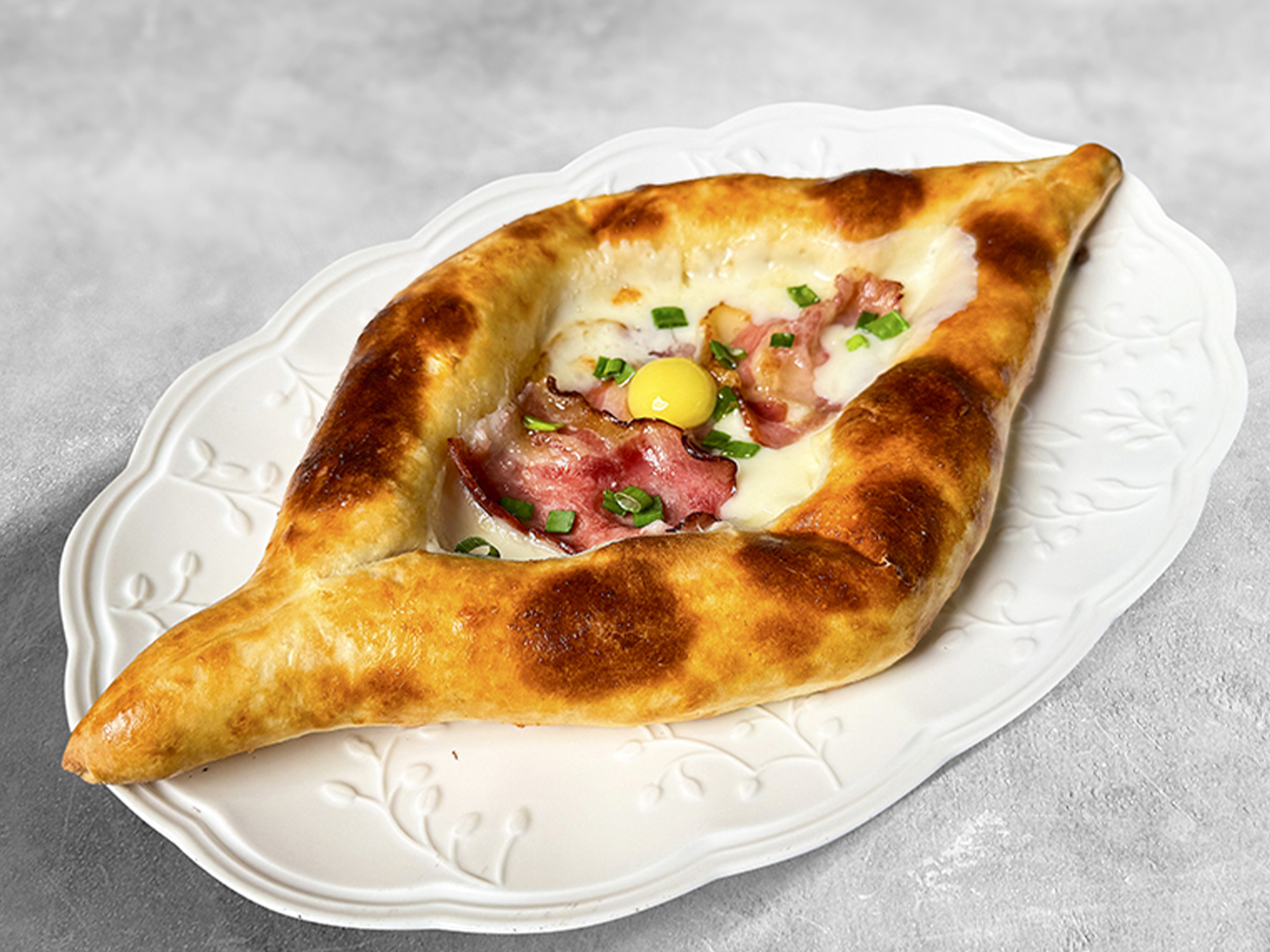 воздушное дрожжевое тесто, хрустящий бекон, сырами чанах и сулугуни